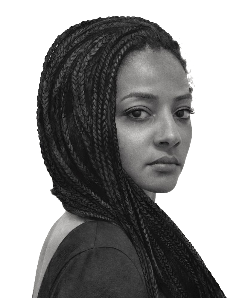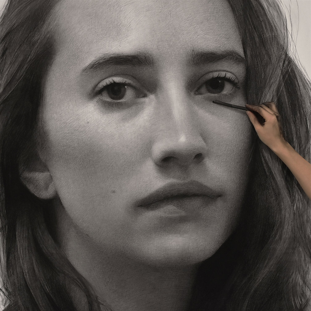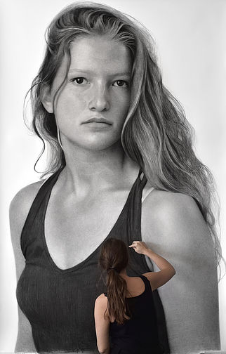 “The towering drawings can reach nearly 8 feet tall and capture near photographic detail of her subject’s faces, hair, and bodies.”