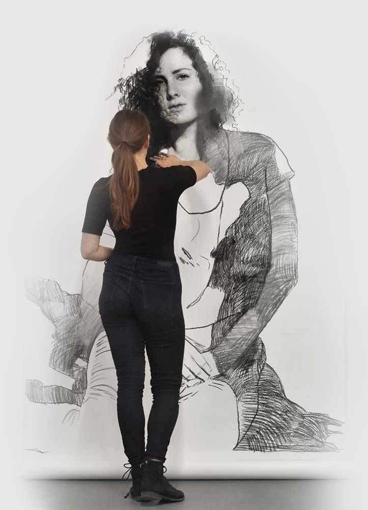 Using charcoal as her weapon of choice, Swiss artist Clio Newton creates huge realistic portraits of women.